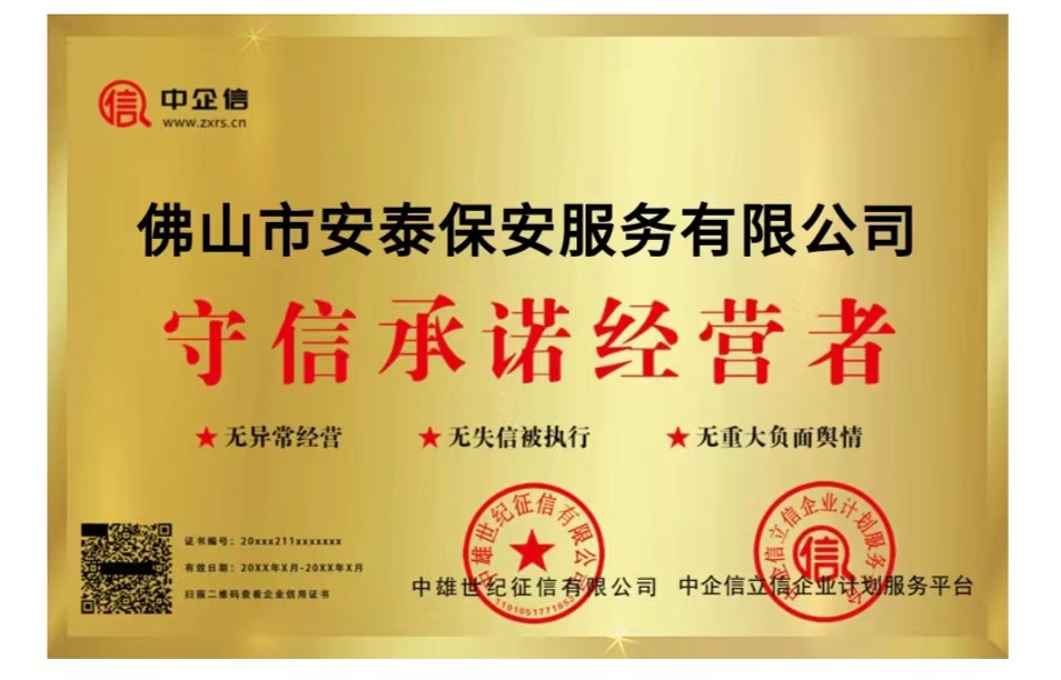 佛山市安泰保安服務(wù)有限公司守信承諾經(jīng)營(yíng)者。